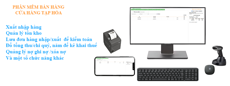 - Quản lý bán hàng: POS, in hoá đơn, bán nhanh trên điện thoại & máy tính.